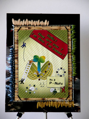 これは、最初のポスター&ポストカード案として作成していたものです。最初、この展覧会のコンセプトは「自分の考える「P-Nuts展」」でした。なので、それに合わせて作成していたのですが、途中で「コンセプトが変更になってしまった」ので、泣く泣く、今のような形に「作り直した」ということになります。こっちは、こっちで、個人的には気に入っていたので、「作品として出品」してみたものです。だから、タイトルには「もう1つのP-Nuts展」とつけてあるわけですね(^^;)。