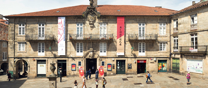 スペイン北西端部ガリシア州のア・コルーニャ県の都市で、ガリシア州の州都サンティアゴ・デ・コンポステーラの旧市街は1985年にユネスコの世界遺産に登録されています。またエルサレムやバチカンと並ぶキリスト教3大巡礼地の1つであり、世界遺産に登録されているサンティアゴ・デ・コンポステーラの巡礼路の終着地としても知られています。 古の多くの人々の願いが集まった希望の息吹が感じられる同地において、昨年で日本とスペインが外交関係樹立150周年を迎えたことを記念して、美術展覧会「美と創造の巡礼展」を開催いたしました。巡礼者と観光客で賑わうトウラル広場に面し、18世紀の由緒ある貴族の屋敷ベンダーニャ邸を改装したエウヘニオ・グラネル財団美術館に、日本画、洋画、彫塑、工芸、書道などの多彩なジャンルの芸術作品が並び、日本人が持つ「美と創造」の魅力に、作品を鑑賞する人たちは驚きを隠せない様子でした。 開催初日、晴天となった5月15日には、本展の会場となったエウヘニオ・グラネル財団美術館の館長パウラ・ロペス・オヘア氏と理事長ナタリア・フェルナンデス・セガラ氏が日本のアーティストをお出迎え。理事長のナタリア氏に館内をご案内いただき、画家のエウヘニオ・グラネル氏の生涯や作品、またシュールレアリスムを代表する偉人画家の作品を解説いただくなど貴重な機会となりました。 館長パウラ氏と理事長ナタリア氏には日本のアーティストの作品をじっくりとご覧いただき、また会期中には、多数の来場者を記録。日本とスペインの両国間を文化的に結ぶ、素晴らしい展覧会となりました。
